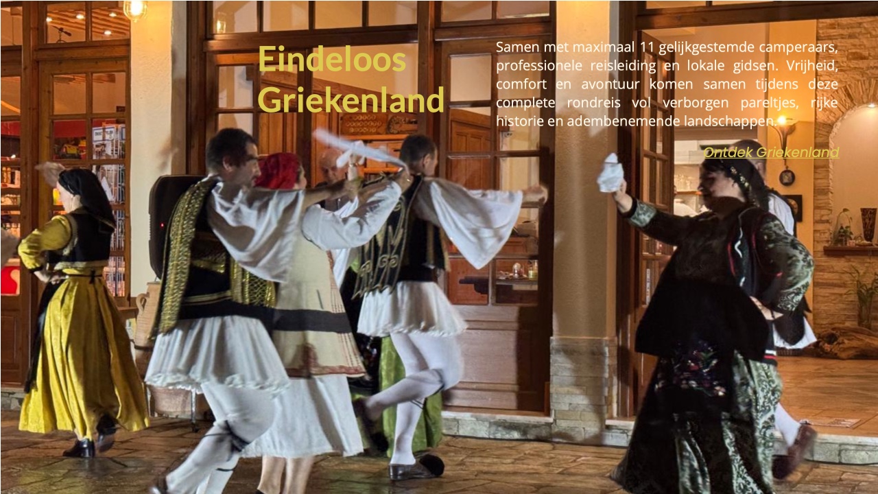 Ga met ons mee op een uniek avontuur! Onze kleinschalige groepsreizen naar Marokko, Griekenland en binnenkort ook de Balkan zijn speciaal samengesteld voor reizigers die méér willen beleven. Met een ervaren reisleiding die de landen op hun duimpje kent, reis je in een groep van maximaal 11 campers langs de mooiste routes, bijzondere plekken en verborgen parels.