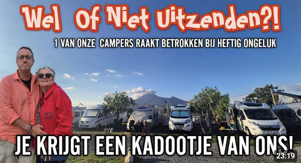 Luitjes, we hebben heel lang gedubt…wel of niet uitzenden… uiteindelijk in overleg met betrokkenen gekozen om het wel te laten zien. Onze groepsreis kende een triest einde. 1 van onze wagens raakte betrokken bij een heftig ongeluk. Gelukkig zijn onze deelnemers er zonder letsel afgekomen en is ook de dame van de tegenpartij inmiddels weer ok, maar de afhandeling liep goed dankzij de verzekering, welke met de deelnemers en ons goed contact hield en zij dezelfde dag nog uitsluitsel hadden welke stappen er verder genomen werden. Kijk mee naar de beelden, hoe door een ongeluk deze camper niet meer verder kon.